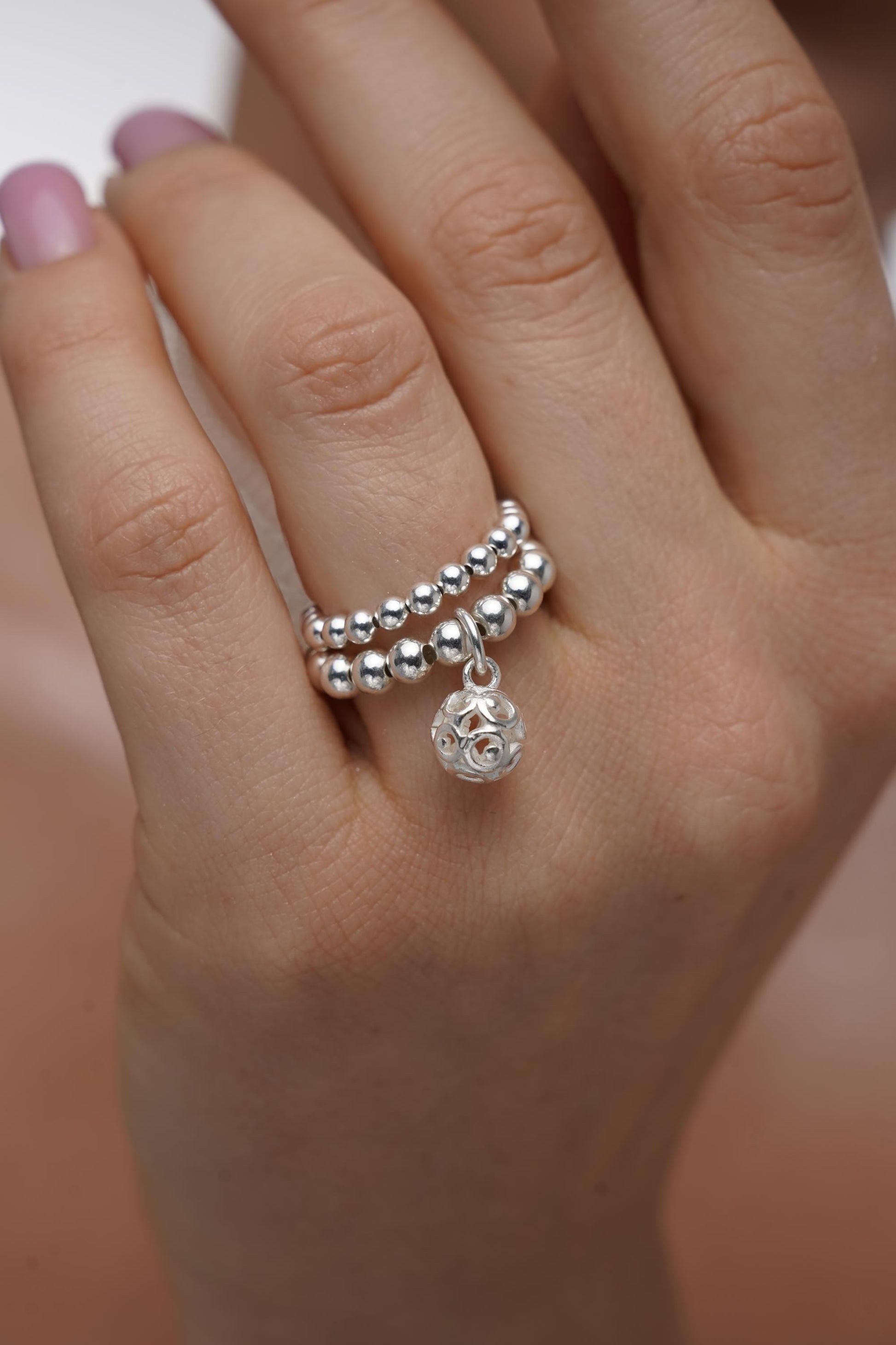 Silver Stretch Bead Charm Ring, Ring, Women's Rings, Charm Rings